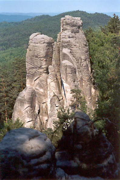 Prachovské skály jsou nejnavštěvovanějším prostorem v okolí Jičína. Je to pískovcové skalní město na jižním okraji Českého ráje v zalesněném terénu, 7 km severo-západně od Jičína. Rozlohou je neveliké, ale turisticky a horolezecky bohaté skalními seskupeními s prehistorickými nálezy; je chráněno jako přírodní rezervace. Četné rokle, strže, úžlabiny, vyhlídky, osamocené pískovcové věže, jehly i skupinové skalní bloky (soustředěné na poměrně malém prostoru jižně od hlavní komunikace) a další méně vyhledávané skály (v severní a západní části prostoru) vytvářejí z Prachovských skal významný turistický objekt. Nejzajímavější partie skal jsou snadno přístupné po bezpečných turisticky značených cestách, a mnoho překrásných vyhlídek zajišťuje dokonalý přehled prostoru Prachovských skal. Prachovské skály jsou státní přírodní rezervací a takto chráněny již od roku 1933.Mapy: