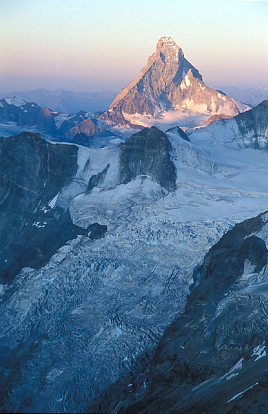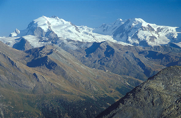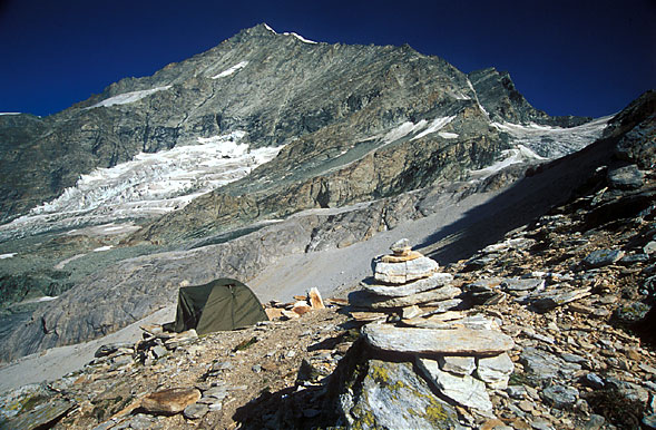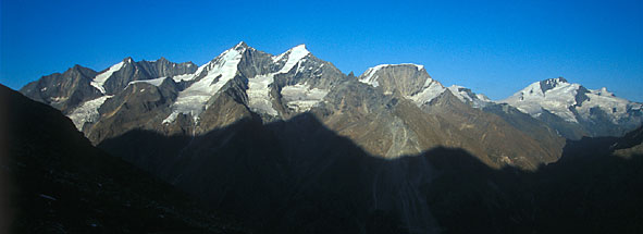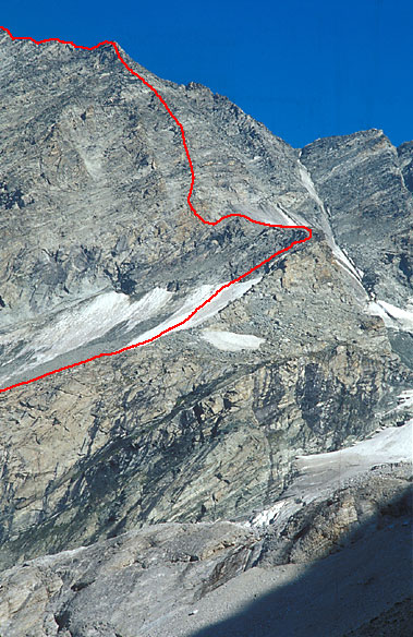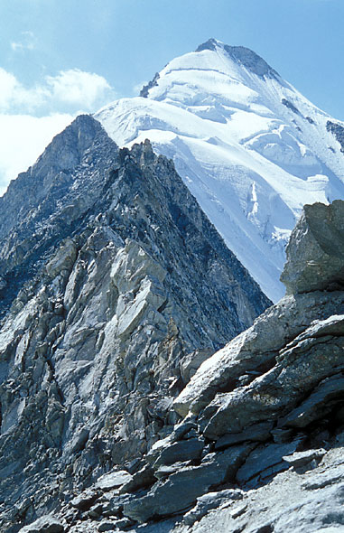 Nádherná pyramida, od SV bílý triangl, od JV a JZ skála se sněhovými kuloáry, ale po novém sněhu je jako ledově bílá hora. Má tři vzrušující ostré hřebeny spojené prudkými stěnami, dávající tomu všemu vzhled ideálního vrcholu. Weisshorn nemá tak strategickou polohu mohutného štítu nad údolím jako Matterhorn, ale je vyřezán a odhalen v nádheře pro ty kdo tuto obtížnou horu v jejich výškách navštíví. Poprvé jsme viděli tuto sněhovou pyramidu při našem výstupu na Dom, již tehdy se nám vrchol moc líbil, proto jsme dnes také tady.