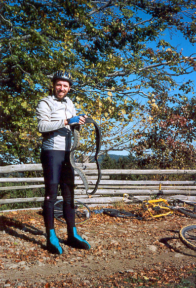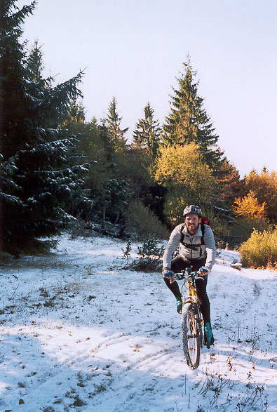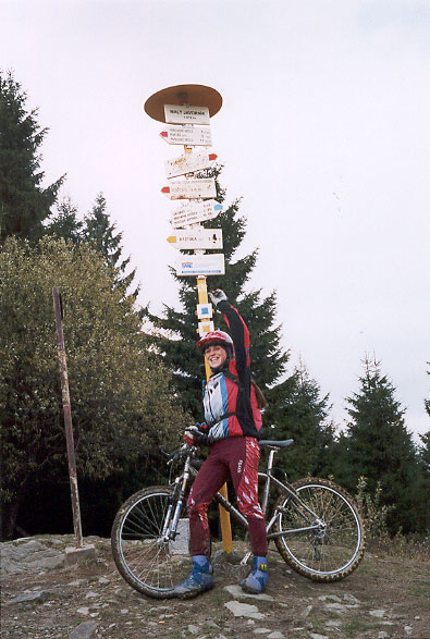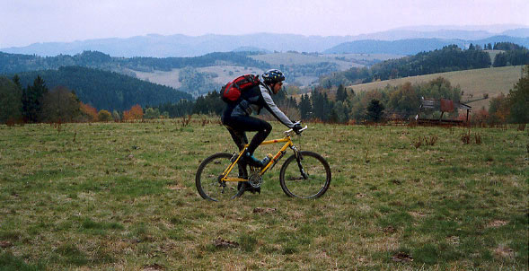 Před odjezdem ještě čistíme kola od největších nánosů bahna a mažeme olejem suché ševelící řetazy. Až po vrchol Krkostěná veda trasa mezi 850 – 1000 m.n.m s nejvyšším bodem Malý Javorník (56,8km; 1029 m n.m.). Na chatě Kohútka (64,1 km; 913 m n.m.), dáváme skvělou kyselicu a již méně dobrou gritku. Výstup na vrchol Makyta (71,6 km; 923 m n.m.) je hodně strmý a je tedy nutno kolo hodit na rameno. Po hřebenu jedeme až do sedla Radošov, odtud již sjíždíme do Huslenek a po silnici jedeme až do Vsetína.