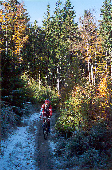 Z Vsetína startujeme kolem 9:30 za slunečného a studeného počasí. Ráno jsem doma na teploměru odečetl –3°C, ale na prvním kilometru, už je příjemněji.