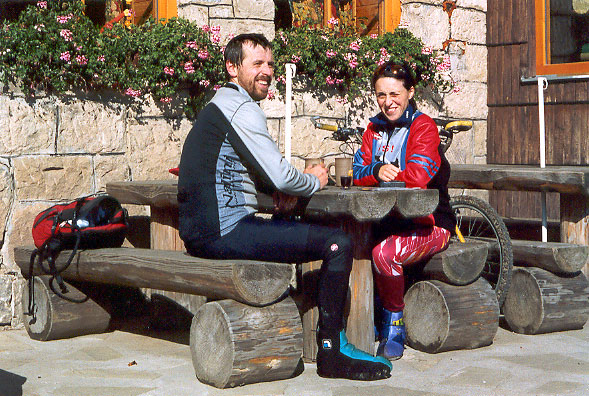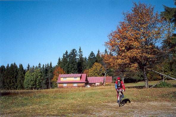 Na chatu dorážíme zmordováni o vzhledu speleologických špinavců, daleci vymydlených elegantních bikerů z rána.