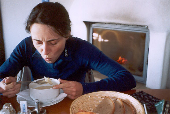 Nakonec místo na chatě Haferka, kde je plno ( mají zde sraz motorkáři), spíme na horském hotelu Fran, kde nám ubytování domluvil správce z Haferky. Do horského doupěte Haferka doporučujeme zajít na skvělé topinky s česnekem a na Hotelu Fran si jako třešničku na dortu dejte sladké palačinky s jahodami a pokud vám zbude více energie než nám tak i saunu, která je v ceně ubytování.