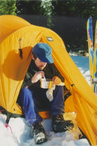 Horní část za moc nestojí, sněhu málo a je trošku těžší od sluníčka (jo být tu tak o pár hodin dříve) a občas si i skluznice odnese podpis tatranské žuly. Spodní partie kotle je ovšem fantastická a tak volíme sjezd až do Kriváňského žlabu a následně po zelené až ke Třem Studničkám a odtud po magistrále zpět do BC. Konečně ve stanu, značně zničení po dnešních 8 hodinách v pohybu a nestoupaných 1800m.