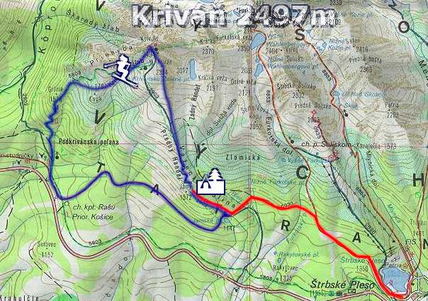 Noční obloha na Štrbském plese je rozzářena hvězdami a měsíc nám svítí na cestu. Asi hodinku jdeme na lyžích s čelovkami po červené značce k rozcestí u Jamského plesa s těmi odporně těžkými batohy na zádech. Dále po modré směrem ke Kriváni už to na lyžích nejde, tak s nimi na zádech jdeme ještě asi 20 minut k hranici lesa, kde zakládáme náš BC.