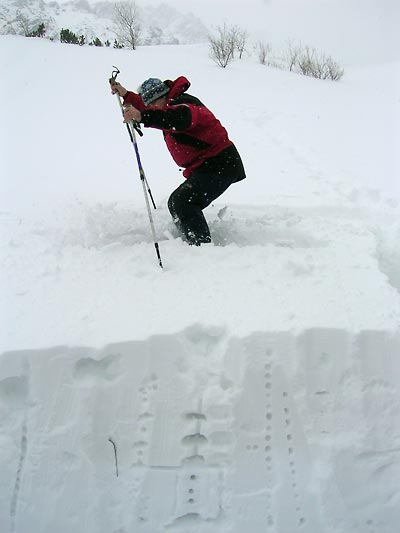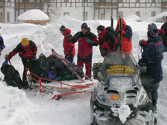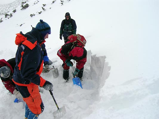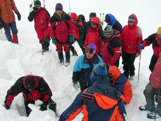 V neděli nám Jura dělá praktickou ukázku sondáže a práce s lavinovým vyhledávačem.