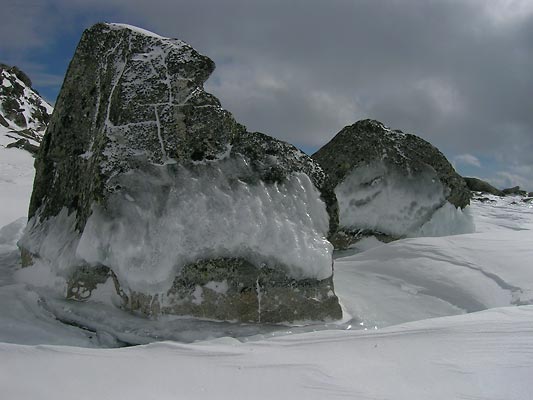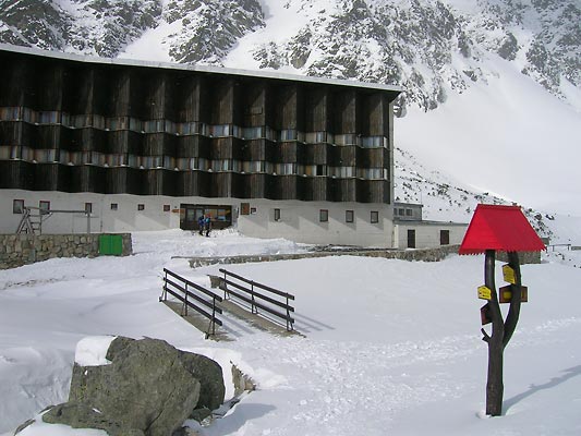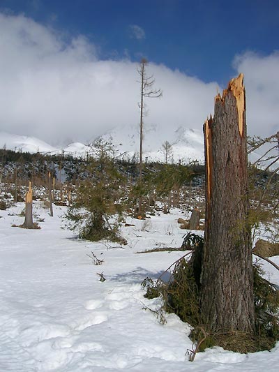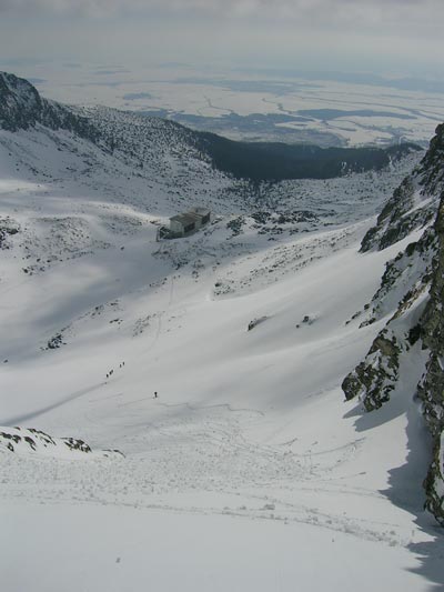 Luďek, Fráňa a já jdeme dnes po stopách Slívy a Petra na Zbojnickou chatu. Bohužel kvůli prudkému oteplení a stále velkému množství sněhu a lavinovému nebezpečí jdeme spodem přes Hrebienok. Stejnou cestou pak i zpět. Kluci co chtěli jít dnes na Sopeĺ si už nezalezli, led pořádně změknul.