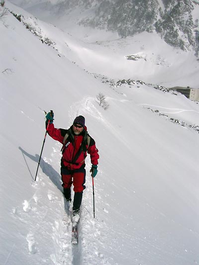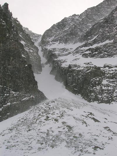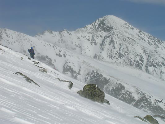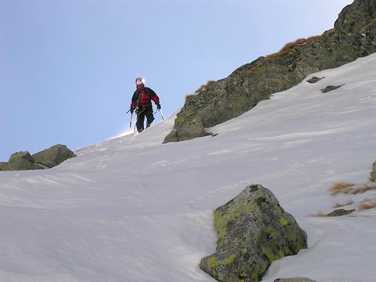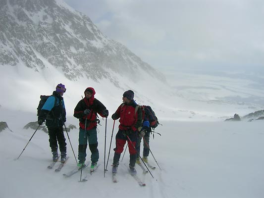 Další den jdeme s klukama na lyžích do Batizovské doliny, počasí je ale hnusné, v silných nárazech větru je problém nespadnout. Po návratu k chatě se jdeme ještě podívat K Polskému hřebeni a do Krčmárova žlebu.