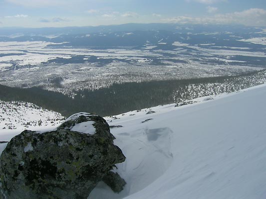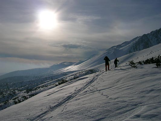 Je hodně sněhu, ale žádný pořádný základ, trávy suché ….V době kdy odjíždíme je ve Vysokých Tatrách vyhlášen IV stupeň lavinového nebezpečí.