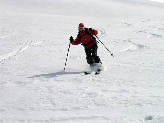 V pondělí se většina účastníku rozjela zpět do svých domovů. Někteří jsme se ještě rozhodli pobyt o den prodloužit a vystoupit na Monte Cevedale (3769 m.). Za dobrého počasí jsme dosáhli Cima Cevedale / ZufallSpitzen (3757 m.). Na vrcholu se bohužel počasí pokazilo a zpět sjíždíme v sílícím větru a zhoršené viditelnosti.