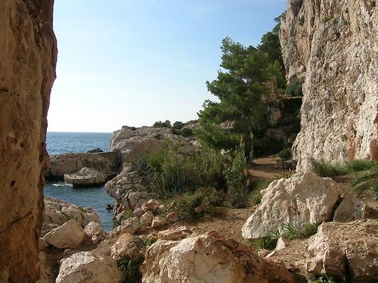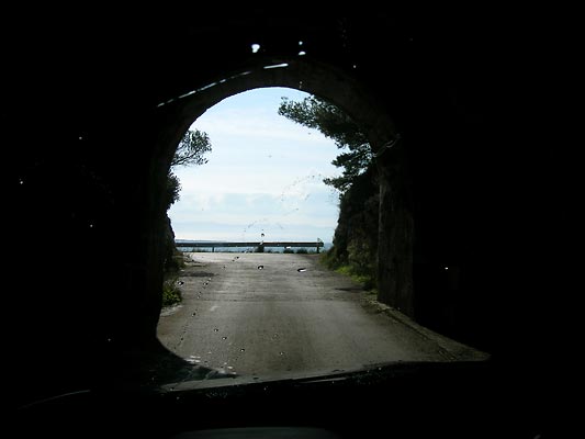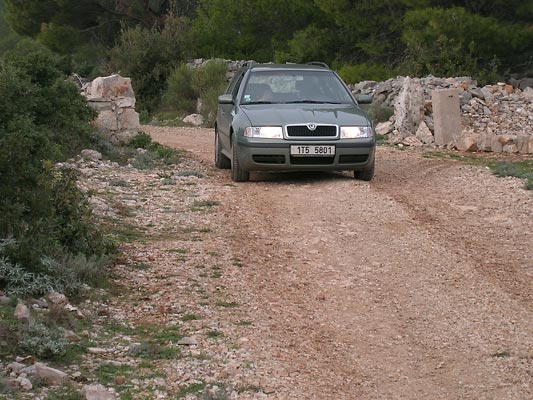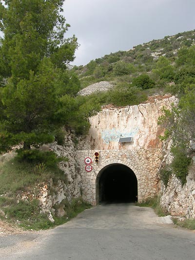 Cestu na ostrov Hvar jsme zvolili trajektem z Drveniku do Sućuraje. Odtud vnitrozemím do Jalsy a dále směr Sveta Nedjelja tunelem. Tunel je docela dlouhý, úzký a nízký. Ve dvou místech je prostor, kde se mohou auta vyhnout. Dá se přejet i přes hřeben, ale je to špatná kamenitá cesta. Vím, o čem píši, zpátky jsme si ji vyzkoušeli.