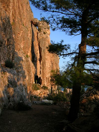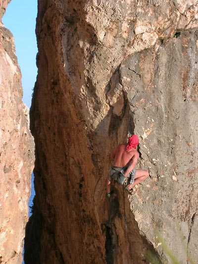 No a počasí, tak to nám vyšlo perfektně. Každý den se dalo v moři koupat a poležet na pláži, slunce nádherně svítilo. Lezení jen v tílku či bez něj, a přes poledne raději ve stínu věže.