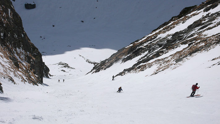 Ze sedla výrazným žlebem (filmárov žlab) do Malé Studené doliny.