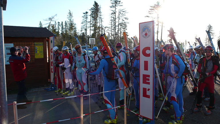 Start byl přesunut z Tatranské lomnice do Bielej vody, kvůli nedostatku sněhu v nižších polohách. Po kilometru a půl chůze s lyžemi na batohu se dalo jít již na pásech.