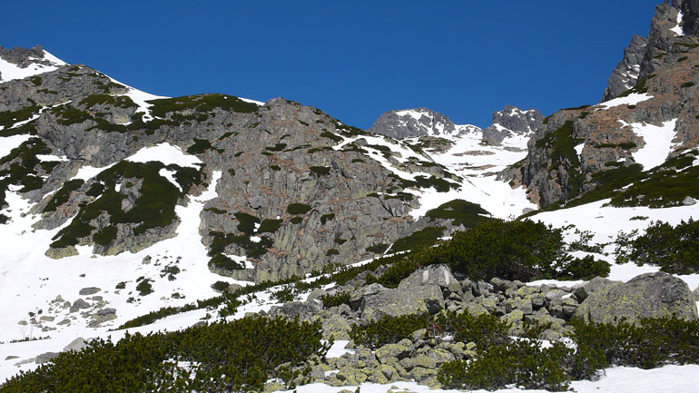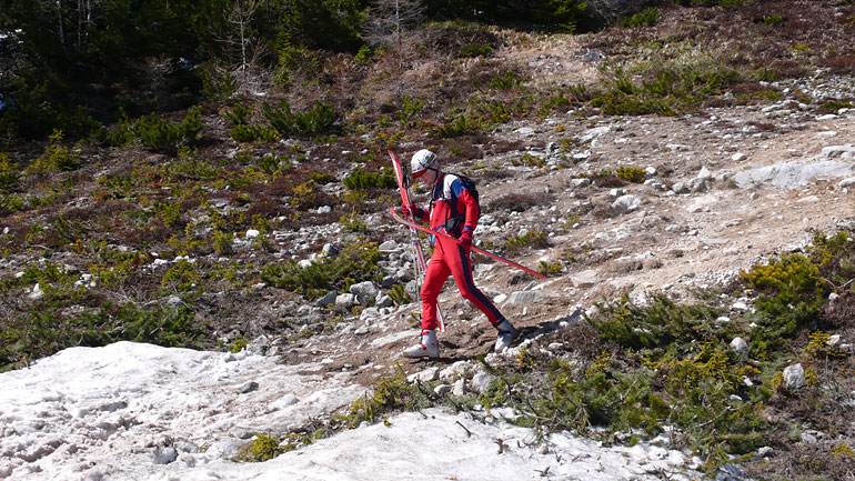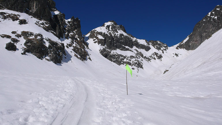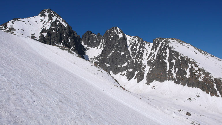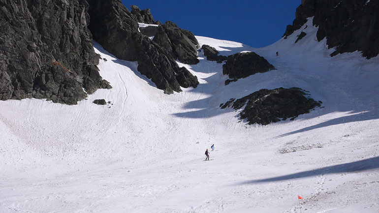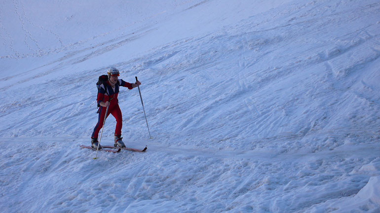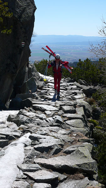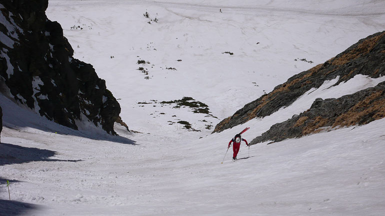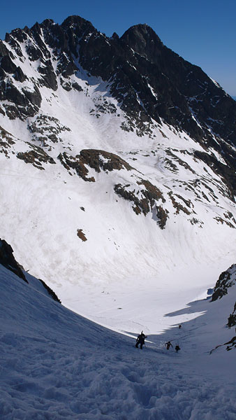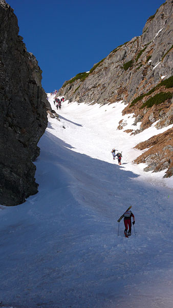 Na trati nás čekali „jen“ tři stoupání, a tři sjezdy. Pásy se sundavávaly v Baraniem, Priečnem a Lomnickém sedle. Celkem se nastoupalo okolo 2900m výškových metrů, což je pěkná porce metrů. Sjezdy byly od zmrzlých až po rozbředlé, tak jak postupovalo sluníčko a denní doba.