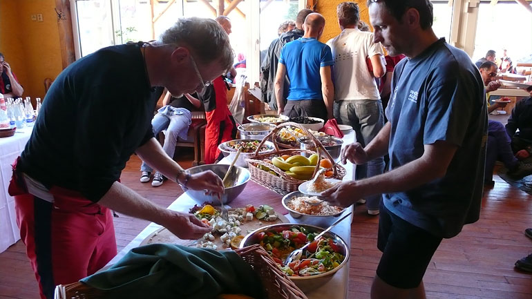 V cíly pak dvě piva, porci špaget a spoustu dobrot na závěrečnám rautu.
