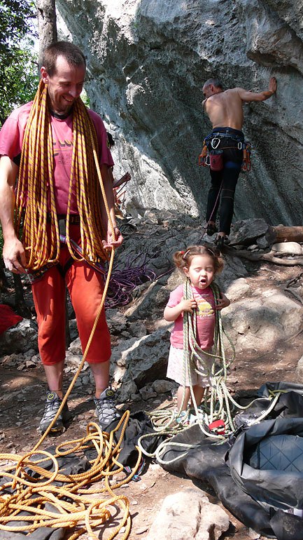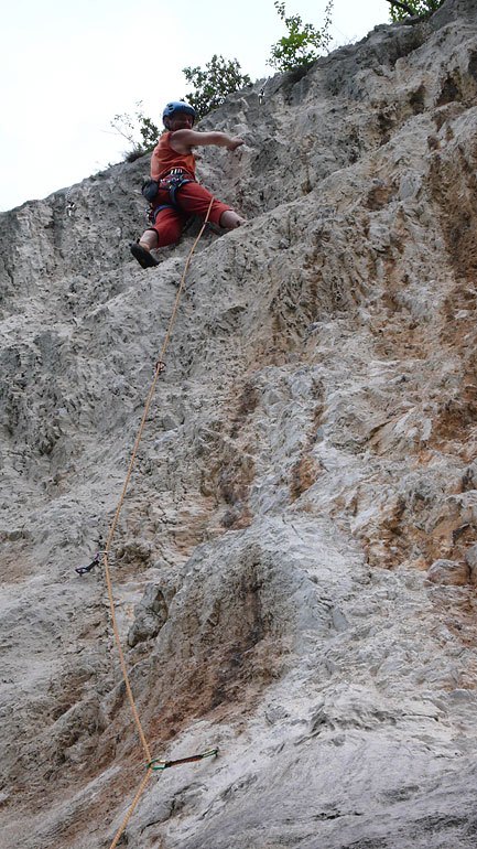 No a poslední již známou oblast kterou jsme navštívili bylo profláknuté Nago. Pamatoval jsem si je nějaké oklouzanější, nakonec zde bylo pohodové a pěkné lezení. Lidí bylo sice dost ale žádná hrůza. Maruška zde měla dokonce i nějaké kámoše na hraní.