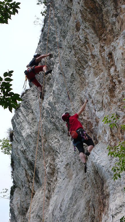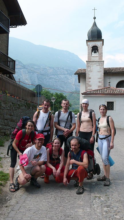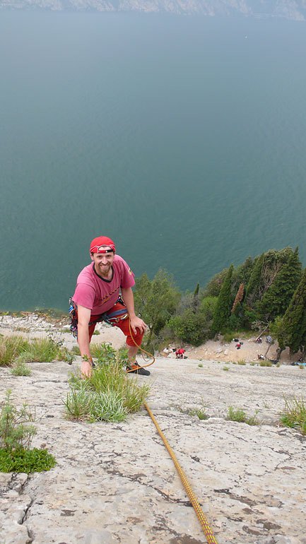 Strávili jsme v campu Zoo v Arco celý týden, od soboty do soboty. Lezlo se každý den, ale také nám každý den odpoledne sprchlo. Ještě že měl Honza ten obrovský stan a tak jsme mohli relativně v suchu přečkávat uplakané počasí.