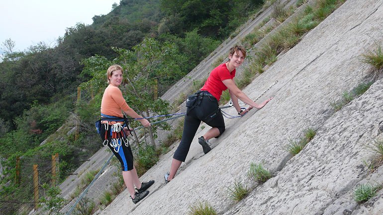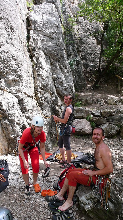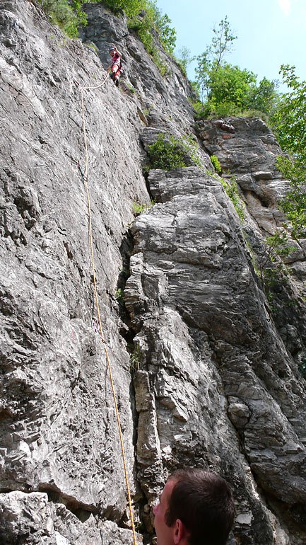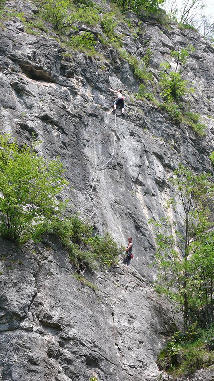 Další pro nás novou oblastí byl Promeghin. Je o něco málo blíže než Preore. Od parkoviště cca 5 min. Zde nás trošku překvapil stupeň zelenosti skal. Také skála zde byla tvořena slepencem a lezení zde značně ohoblovalo prsty.