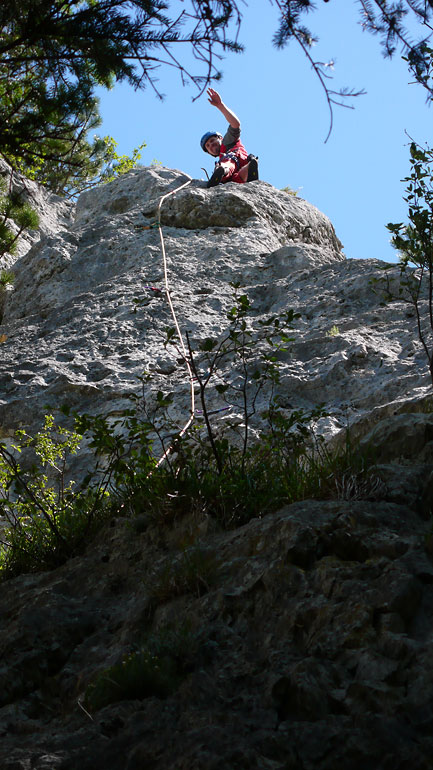 Předpověď počasí není nic moc, ale má se zlepšovat. To se nakonec i vyplnilo. Ve čtvrtek lezeme až na večer jen dvě cesty, kdy nás silné poryvy větru chtěli sfouknout ze skály. Také teplota vzduchu 12°C příliš nezahřeje. V pátek se dalo lézt také až odpoledne. Vítr přestal foukat až v neděli. Také teplota se již přiblížila letní 30-tce.