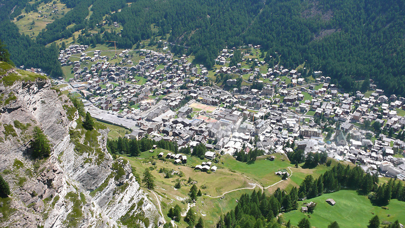 Kamarádi ze sestupu zůstávají na chatě, my ale musíme pokračovat dolů. Zítra máme vyzvednout Františka u babičky. Po desáté večer jsme v Zermattu a voláme taxi. Přijede asi za 15 minut. Sděluje nám ale, že musíme doplatit 22 franků k naší „zpáteční“ jízdence. Je již pozdě a to je příplatek za noční jízdu. Pokud bychom přišli do 17 hod, bylo by vše OK, tedy bez doplatku.