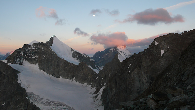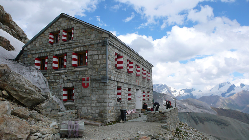 Konečně jsme na chatě. Potkáváme tu českého vůdce (Haček) s českým klientem (Jirka), před pár lety ještě docela nepředstavitelné. Přišli na chatu přes Obergabel. Zítra jsou také na Zinalrothorn. U večeře sedíme ještě s polsko-francouzskou dvojkou a je veselo.