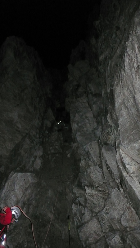 Nakonec byl sestup dlouhý, protože jsme slaňovali i to co bychom asi normálně slézali. A tím, že jsme byli na slaňování čtyři a lana se motala, tak to sestup neurychlilo, ale na druhou stranu s nimi byla příjemná společnost.