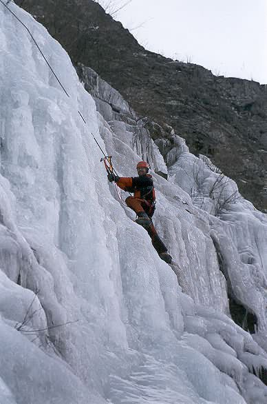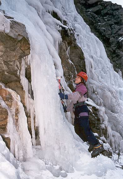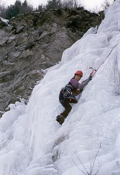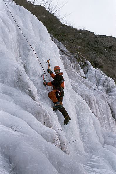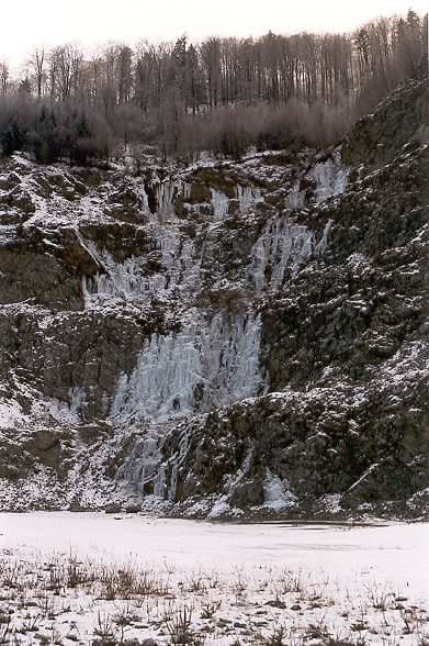 ![]() Pohled na ledové kaskády v levé cásti lomu |