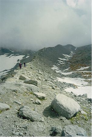-2. 8. 1997 - Okolo 10 hod jsme na místě (na cestě mezi Cataeggio a PredaRosa). Snídáme, balíme batohy a stoupáme k Rif. Pouti