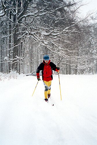 Neděle je, jak jinak, ve znamení odjezdu. S Klárkou jdeme ještě běžkovat, poté zbalíme stan a sjíždíme na běžkách dolů do Bedřichova k autu.