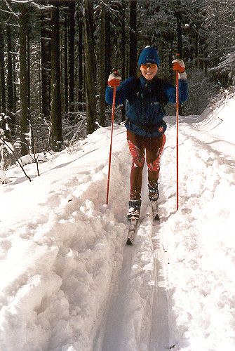 Sobotní dopoledne proráží Petr bežeckou stopu na Hvězdu. Já s Klárkou děláme celý okruh, Rabštejn - Hvězda - Sedlo Skřítek - Rabštejn.