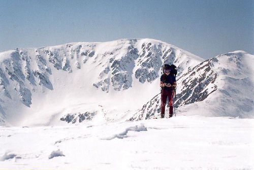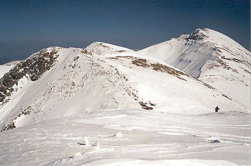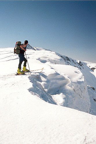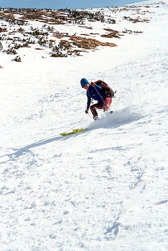 Před polednem vyrážíme k vrcholu Ďurková. Sjezd jeho severním žlebem je skvělý.