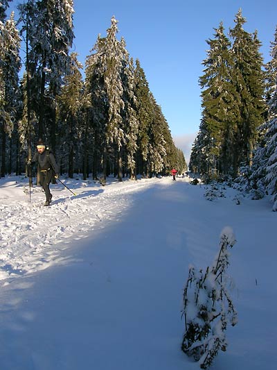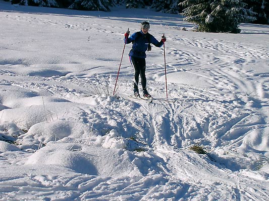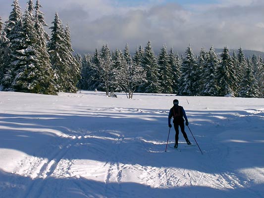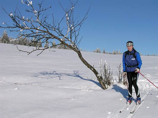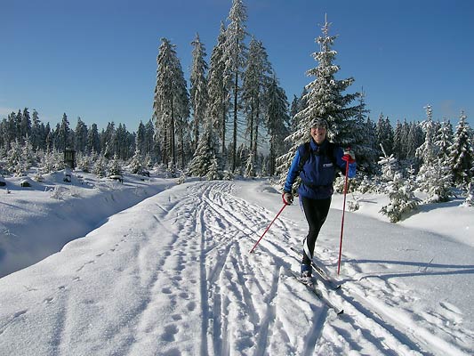 Krušné hory o víkendu ukázaly svou vlídnou tvář a tak krušné nakonec mohlo být pro někoho jen ranní vstávání, za to však do překrásných slunečných dní. Pravda sněhu bylo poskrovnu, ale pro výlet na běžkách dostačující.