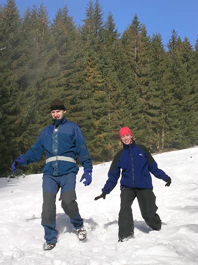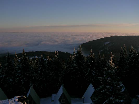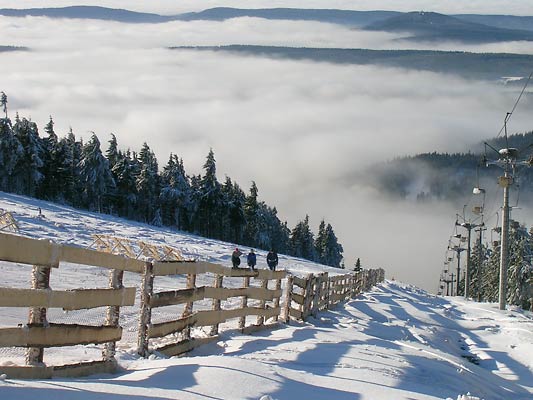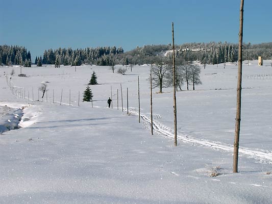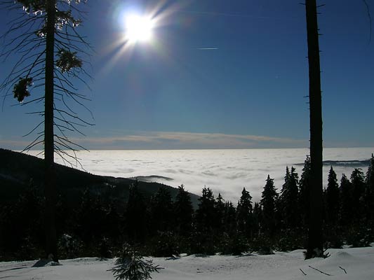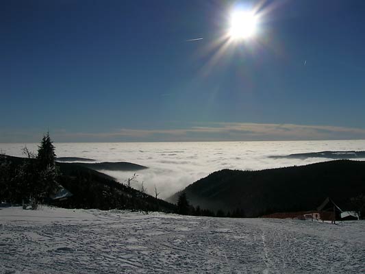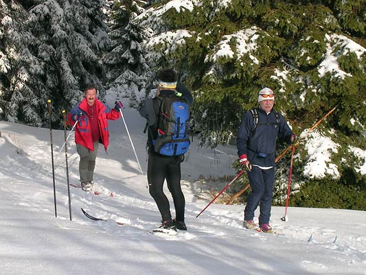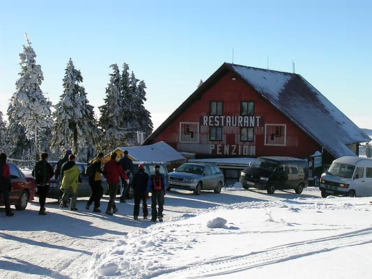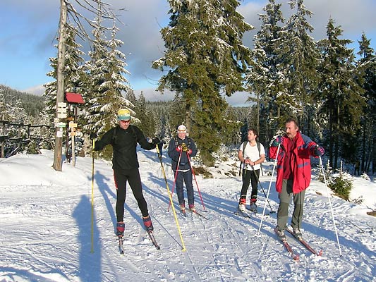 V sobotu se za krásného počasí vydává většina na běžkách po lyžařské magistrále na Boží dar a přes Plešivec zpět na chatu. Ostatní jdou pak na pěší tůru po okolí. Krásné zimní inverzní slunečné počasí a dobrá lyžařská stopa nás ted den všechny příjemně naladí.